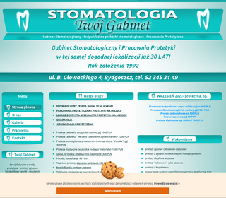 Protetyka, specjalista protetyki . Gabinet i Pracownia. Twój Gabinet Bydgoszcz Zobacz Naszą Ofertę >> Strona Gabinetu i Pracowni Protetyki Bydgoszcz. Twój Gabinet w tej samej lokalizacji ponad 30 lat. Dentysta, stomatolog specjalista protetyki stomatologicznej i starszy technik dentystyczny do Państwa dyspozycji w jednym miejscu. Wykonujemy protezy we własnej pracowni. Nowoczesne protezy zębowe całkowite i częściowe, elastyczne - termowtryskowe np. ACRON, szkieletowe, lane. Indywidualne szyny relaksacyjne elastyczne, twardo miękkie, sztywne. Naprawa protez. Gwarancja, porada, konsultacja. Wizyta po wcześniejszej telefonicznej rejestracji. Ważne/Jak? stomatolog, dentysta, gabinet dentystyczny, protetyka, specjalista protetyki, technik dentystyczny, protezy zębowe akronowe, acronowe, nowoczesne protezy zębowe, acetalowe, nylonowe, naprawa protez, protezy zębowe, protezy dentystyczne, pracownia protetyki, konsultacje, porady, specjalista protetyk, , cennik, pracownia protetyki, gabinet protetyczny Bydgoszcz http://www.twojgabinet.com.pl | PUBLIKACJA 2015-10-16 22:47:52 |